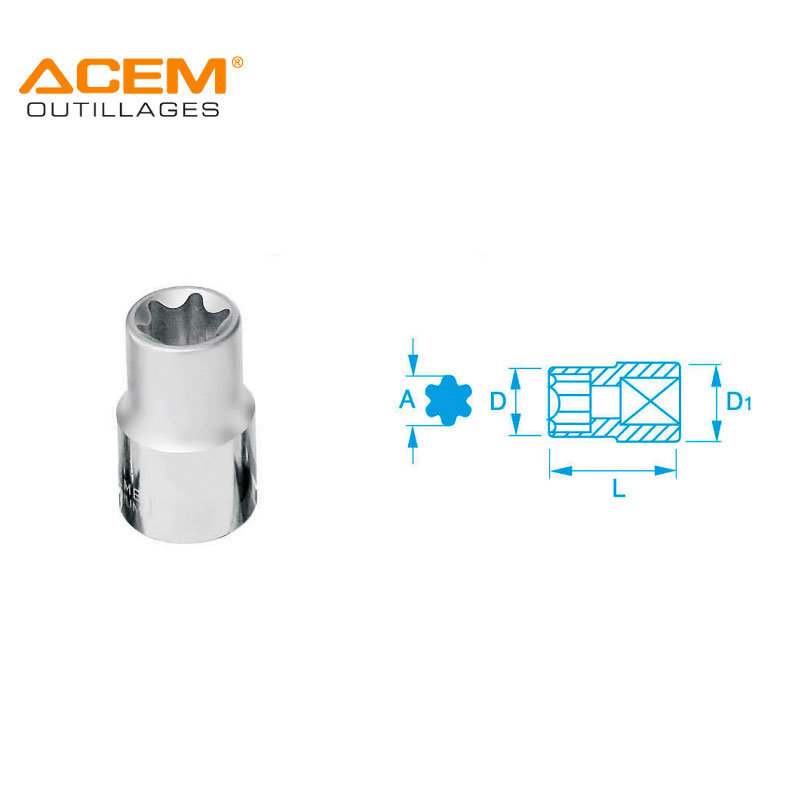 DOUILLE TORX CR-V1/2 E 18 ?Acier chrome vanadium ?Présentation: chromée ?pour usage manuel uniquement ?Marque : ACEM