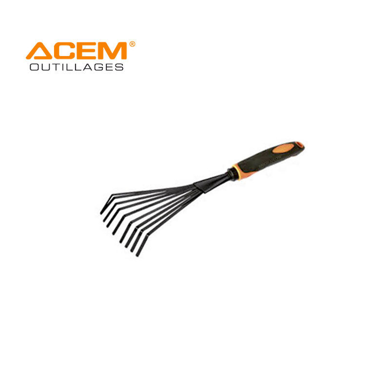 Râteau à mini-manche de la marque ACEM en bi-matière. Utile pour gratter les herbes et ramasser les feuilles.
