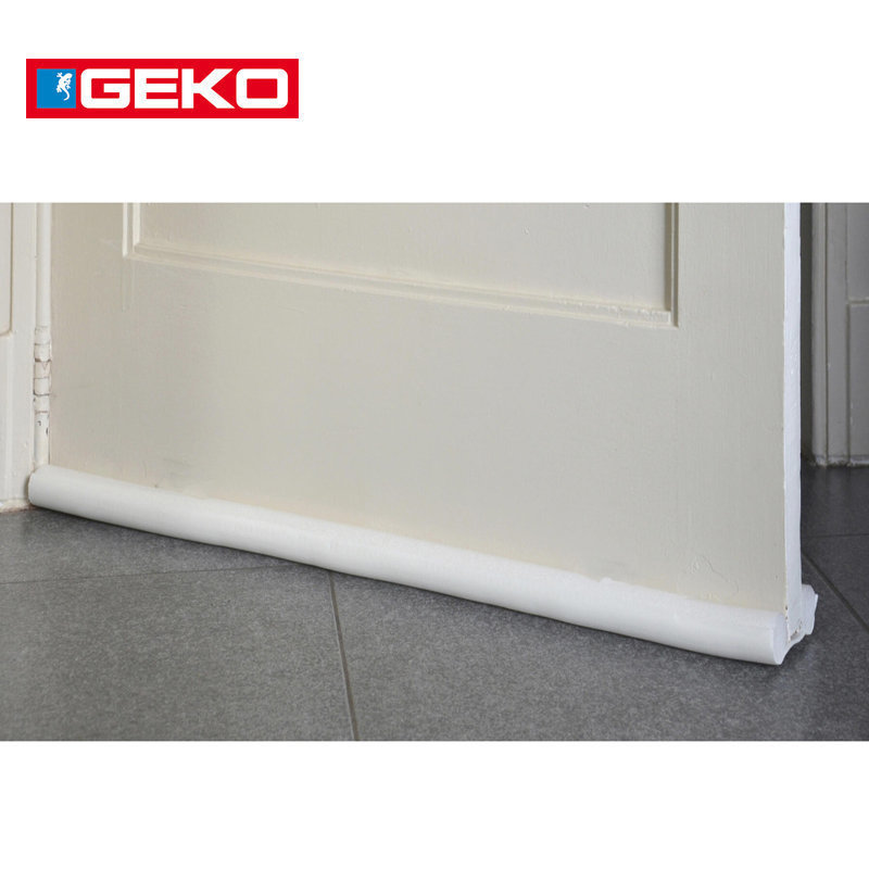 Boudins de porte en polyéthylène expansé et tissu imperméable. Il s'applique en le glissant sous le vantail de façon à ce qu'il garnisse et donne une double protection ; aussi bien à l'extérieur qu'à l'intérieur de la maison. Il protège la maison des courants d'air, de la poussière, de l'humidité, de l'eau et de l'intrusion d'insectes. Il peut être coupé à la taille avec un simple couteau utilitaire ou des ciseaux. Coloris : blanc