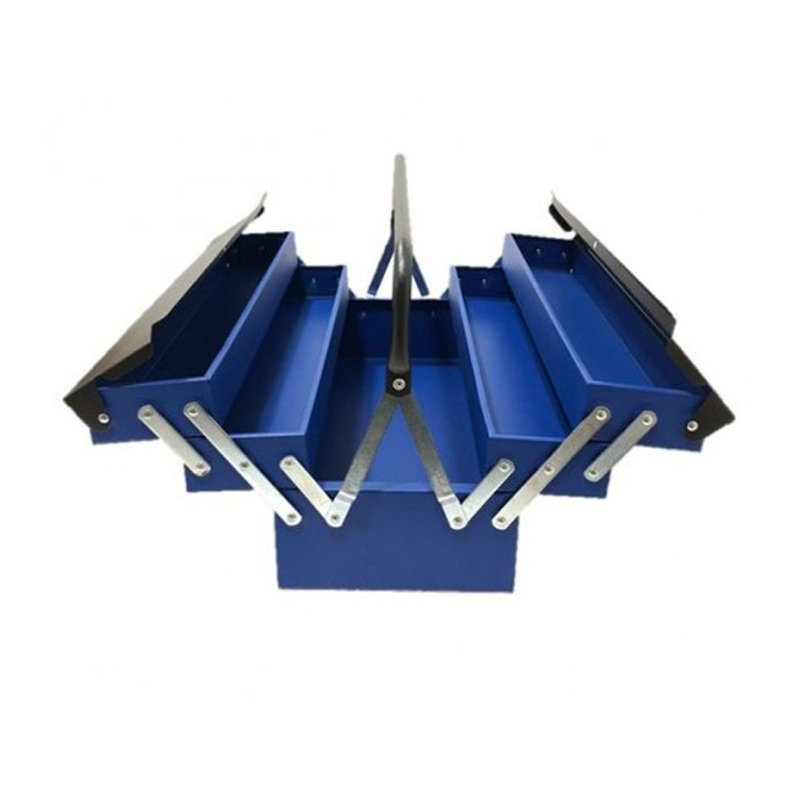 Caisse à outils métallique à 5 compartiments pour professionnels. Caractéristiques :- Caisse à outil 5 compartiments- Poignées rabattables- Résistant à la corrosion / Tôle peinte- Dimensions : 440x210x200 mm