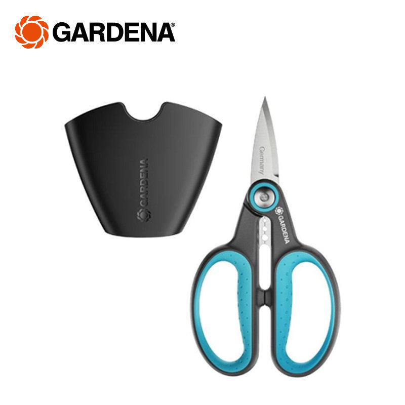 Avec les ciseaux à herbes HerbCut de gardena, coupez facilement et avec précision les herbes ligneuses comme le romarin, le thym ou la sauge. Pratiques et fournis avec leur étui, les ciseaux HerbCut sont toujours à portée de main. Leurs lames pointues en acier inoxydable durable et antirouille permettent une coupe précise et durable. Trois trous de différentes tailles, situés entre les deux poignées, facilitent l'effeuillage. Par exemple, passez-y une tige de romarin pour retirer toutes les feuilles en un seul geste. Vous pouvez ensuite utiliser les herbes directement en cuisine ou les faire sécher. Ces ciseaux à herbes conviennent aussi bien aux droitiers qu'aux gauchers et offrent une prise en main confortable grâce à leurs poignées ergonomiques ErgoTec. Ces poignées antidérapantes et douces assurent une prise en main ferme en toutes circonstances. Les ciseaux HerbCut sont également éco-responsables : les poignées et l'étui sont composés à plus de 70 % de plastique recyclé. Pour ranger les ciseaux, il suffit de les placer dans l'étui que vous fixez au pot à herbes. Les lames sont adaptées au contact alimentaire : ces ciseaux ne dégagent ni odeurs ni goûts. Faciles à nettoyer, ils passent au lave-vaisselle.