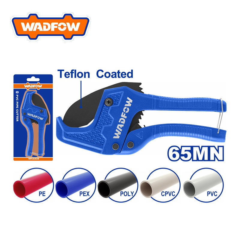 Coupe-tube PVC WADFOW 203 mm / 3-42 mm (WPC54642).Caractéristiques :- Coupe unique- Longueur : 203mm- Enduit de téflon- Diamètre de coupe : 3-42mm- Matériel : aluminium