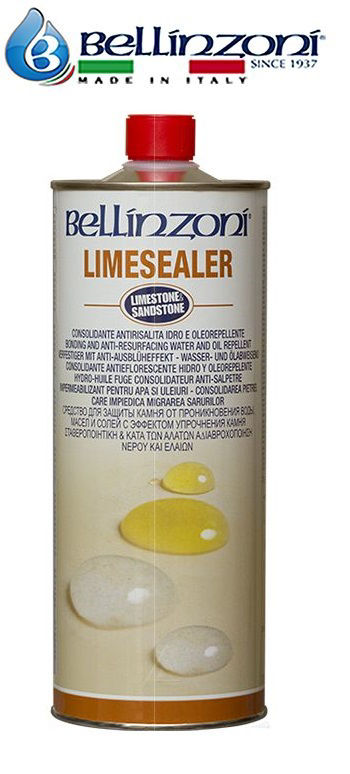 LIMESEALER BELLINZONI Imprégnation renforçante incolore pour la protection du grès, du calcaire, du marbre et d'autres pierres naturelles et artificielles de la formation d'eau, d'huile et de sel. Crée un réseau microcristallin et empêche le passage des sels à travers le matériau et leur libération à la surface, protège le matériau de l'humidité et des pluies acides. Limesealer Bellinsoni empêche la formation de moisissures sur les pierres exposées à un excès d'humidité. Excellent pour les roches très poreuses et meubles telles que le grès et le calcaire. Ne permet pas à l'eau de pénétrer dans la pierre, mais laisse la pierre "respirer", c'est-à-dire qu'elle ne ferme pas les pores et permet à l'humidité de s'échapper de la pierre sous forme de vapeur. Après application, le produit ne crée pas de film de surface et de brillance artificielle. Dans la plupart des cas, il reste transparent,