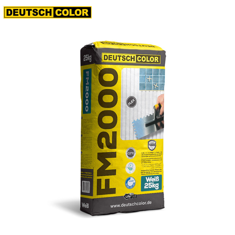 Mortier colle flexible à base de ciment pour la pose de carreaux céramique, porcelaine, grès.. etc. DOMAINE D’APPLICATION : Le FM 2000 applicable en intérieur et extérieur, est utilisé pour la pose de carreaux de différentes dimensions en céramique, porcelaine et grès sur des surfaces variées telles que, béton, revêtements isolants, ciment, gypse, carreaux anciens, etc. Lorsqu’on renforce le FM 2000 avec l’additif LATEX, ses paramètres techniques d’adhérence sont améliorés, et devient dès lors approprié pour l’Application sur des surfaces déformables tels que carreaux en gypse ou en bois et planchers chauffants.