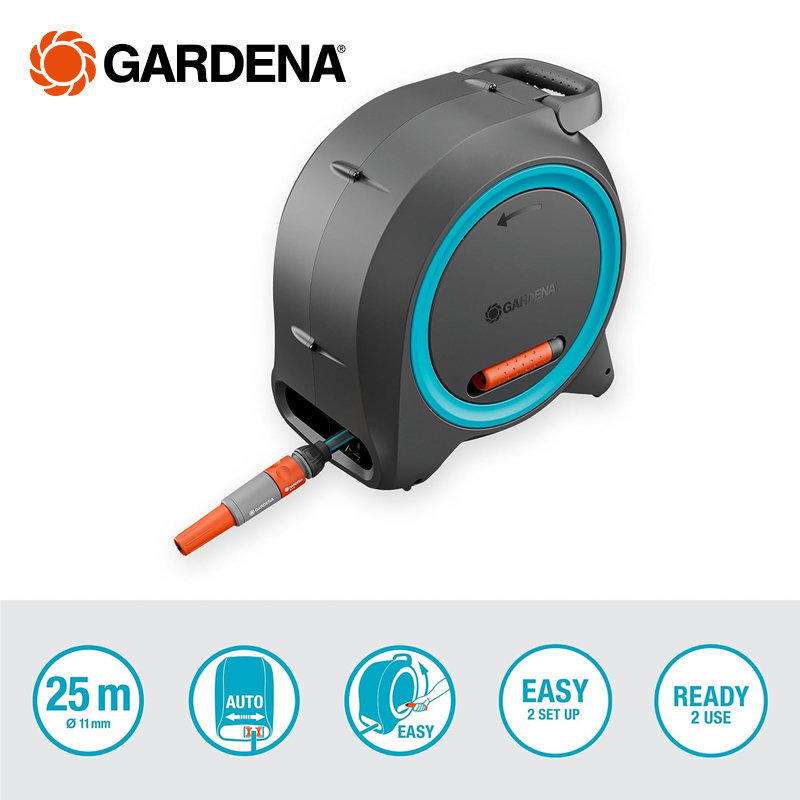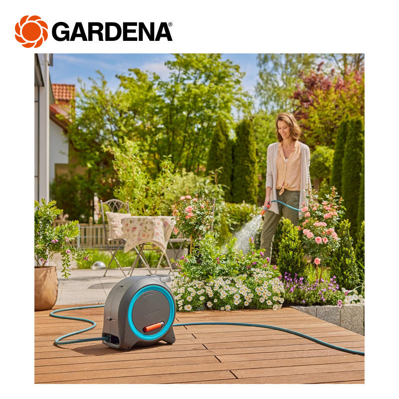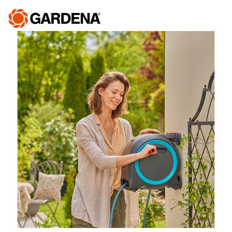• Découvrez le coffret à tuyau double GARDENA, utilisable au mur ou à l'extérieur, idéal pour les jardins de taille moyenne à grande. Ce coffret peut être fixé au mur ou déplacé.