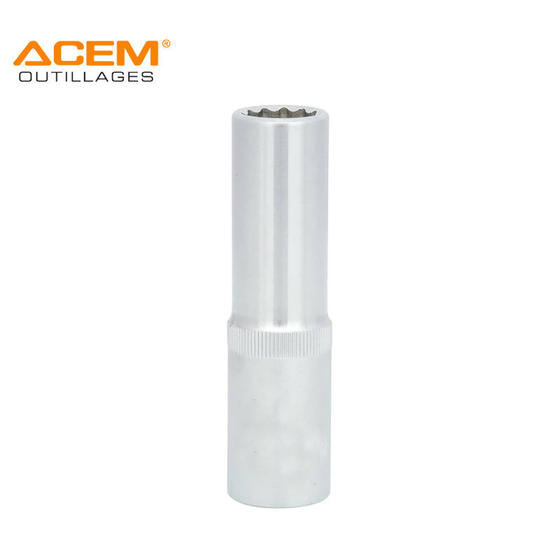 Douille 1/2" 12 pans longue 13mm acem, est un outil de haute qualité conçu pour une utilisation professionnelle. Il est fabriqué en acier chrome vanadium durable et présente une finition chrome satiné résistante à la corrosion.