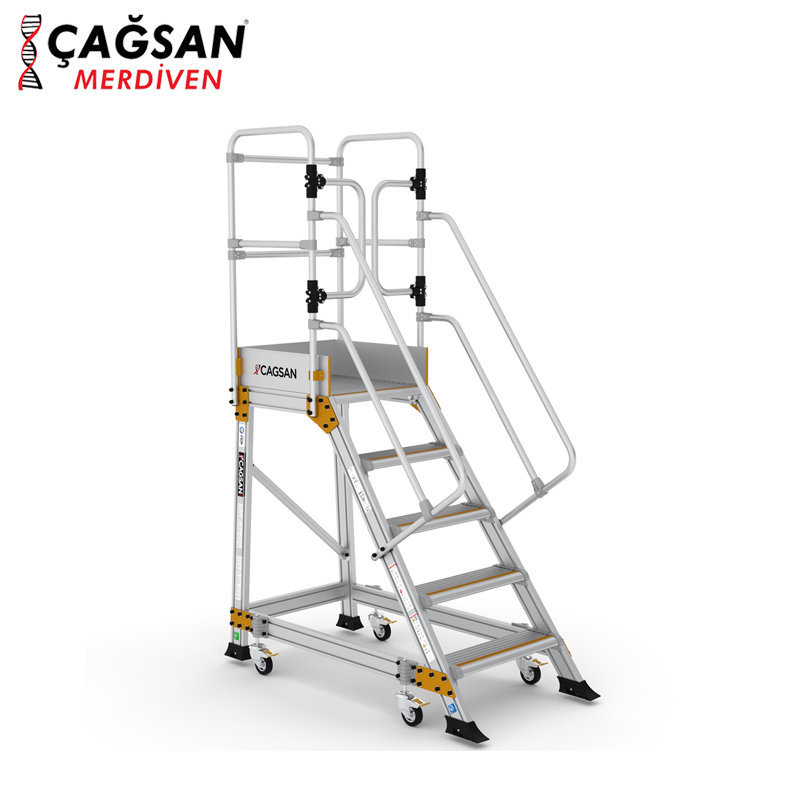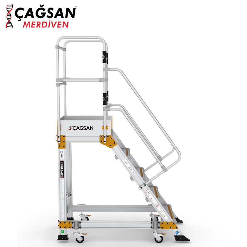 Les plates-formes industrielles en aluminium SPRINGO ont un système de freinage à ressort qui garantit une utilisation sûre en immobilisant la plateforme lorsque l'usager monte dessus. Lorsqu'il descend de la plateforme, il peut déplacer le produit facilement grâce à ses roues.