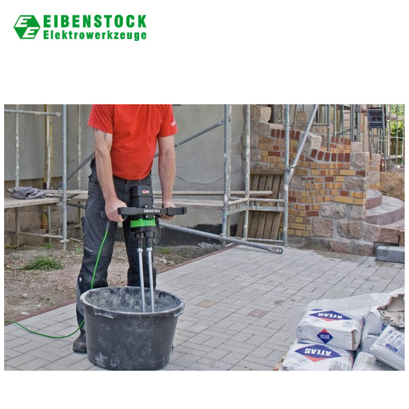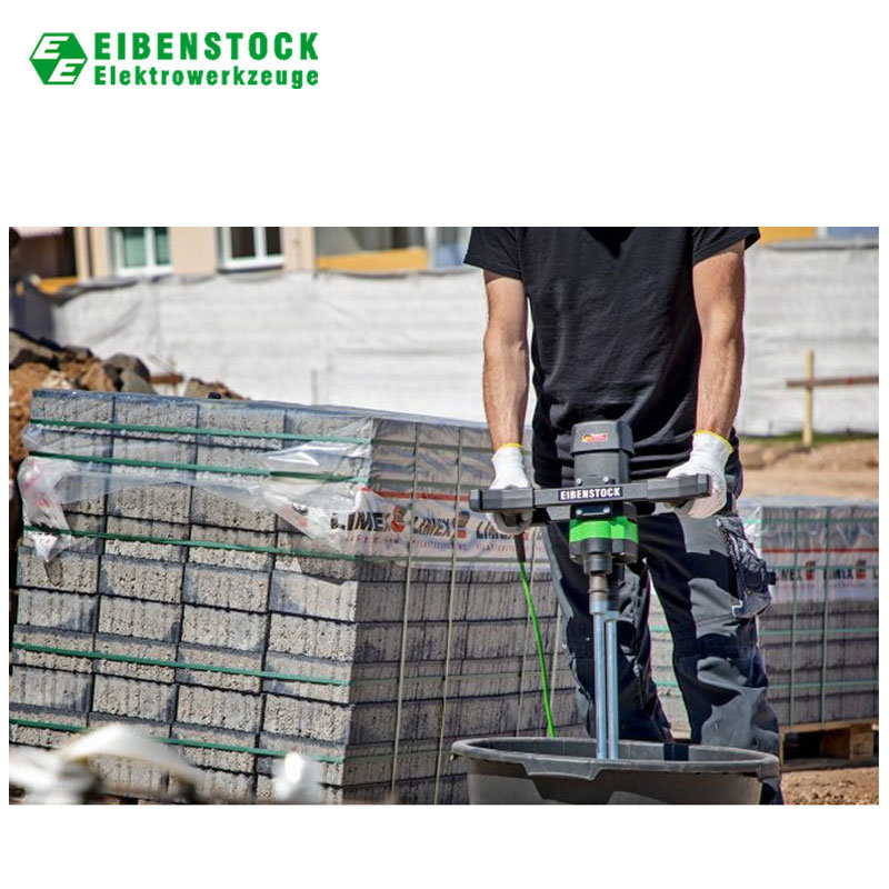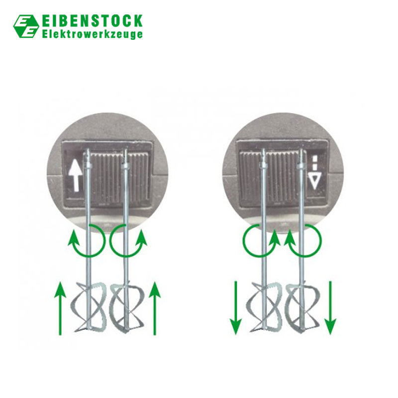 -Mélange dans le sens des aiguilles d'une montre de matériaux très visqueux et rigides, par exemple de la colle à carrelage, du mortier prêt à l'emploi, du plâtre, de la chape, des résines époxy, des produits d'étanchéité, des granulés, des matériaux multi-composants, des revêtements