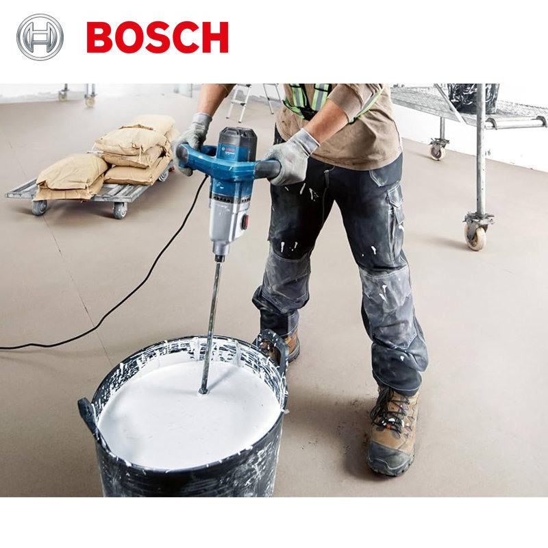 • Utiliser une perceuse pour mélanger du ciment, de la peinture, du plâtre ou d'autres matériaux de construction peut s'avérer complexe. Notre malaxeur Bosch GRW 140 Professional, très efficace, vous permet de gagner du temps et de mélanger avec moins d'efforts. Cet outil filaire vous permet de mélanger facilement de grands volumes grâce à son puissant moteur de 1 400 W. Sa poignée ergonomique en forme de roue vous permet de travailler confortablement, même pendant de longues heures. Grâce à son indicateur LED de rappel, vous n'avez plus à vous soucier du remplacement du balai de charbon. Ce dernier se remplace facilement grâce au couvercle.