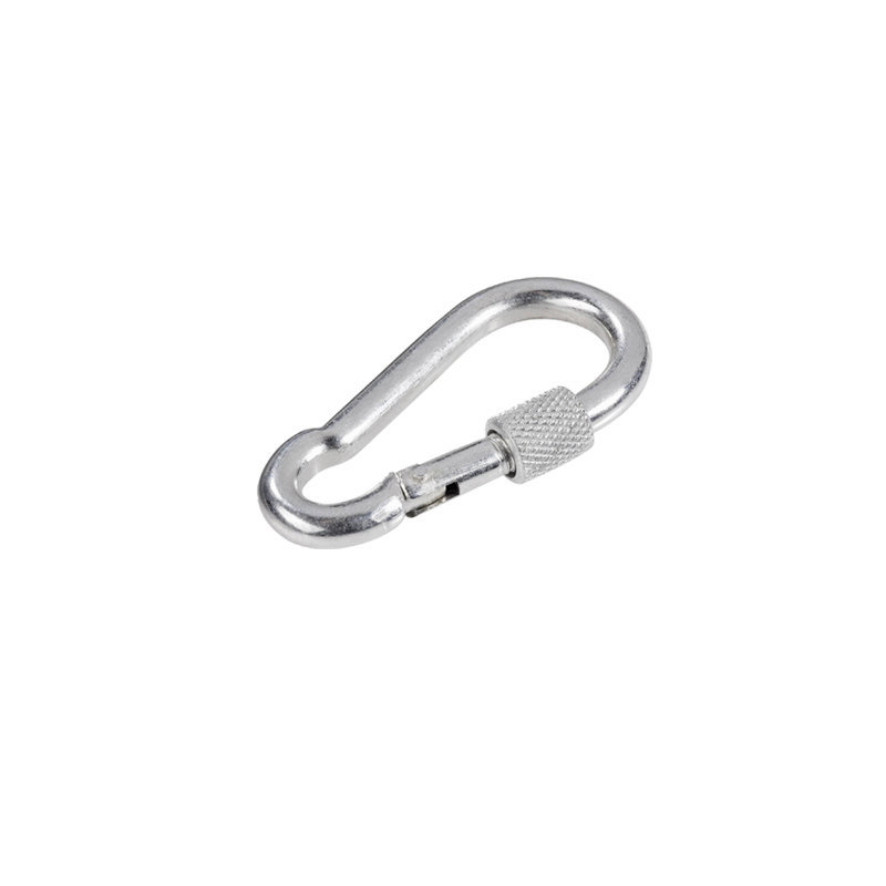 Un mousqueton, également appelé crochet à feston, mousqueton, fusil à chambre ou carabine, est un crochet doté d'une partie articulée qui ferme complètement l'ouverture. Avec ce crochet, une connexion rapide et solide peut être établie. L'écrou de verrouillage garantit que le mousqueton ne peut pas s'ouvrir facilement. Cela offre une sécurité supplémentaire, car pour ouvrir le mousqueton, vous devez appuyer sur l'écrou de verrouillage vers le bas.