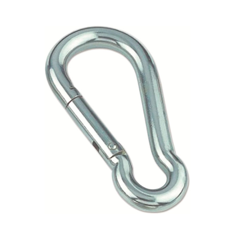 Mousqueton d'escalade ou de pompier en acier avec revêtement en zinc blanc. Les mousquetons ont une utilisation polyvalente à la maison, dans le jardin, ainsi que pour l'arrimage de matériaux lors du transport.