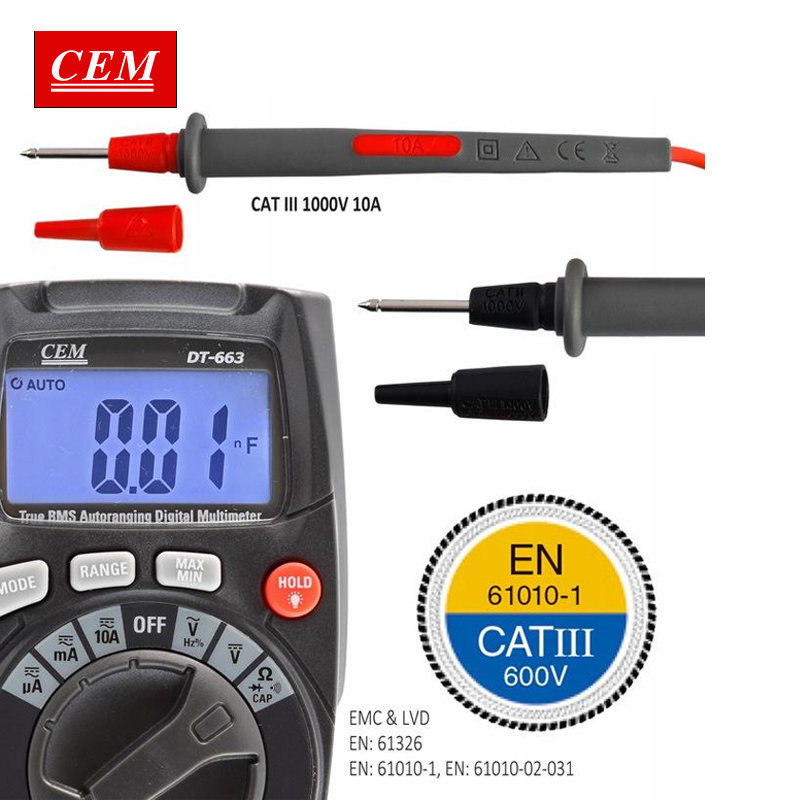 Le multimètre DT-663 est un instrument de mesure multifonctionnel offrant des fonctions d'ampèremètre et de voltmètre. Conçu pour les professionnels comme pour les bricoleurs, il permet des mesures précises dans de nombreuses applications. Ce multimètre dispose d'une sélection automatique de la gamme de mesure, ce qui simplifie son utilisation et améliore l'efficacité du travail. De plus, sa conception compacte et son écran rétroéclairé en font un outil pratique et facile à utiliser au quotidien.