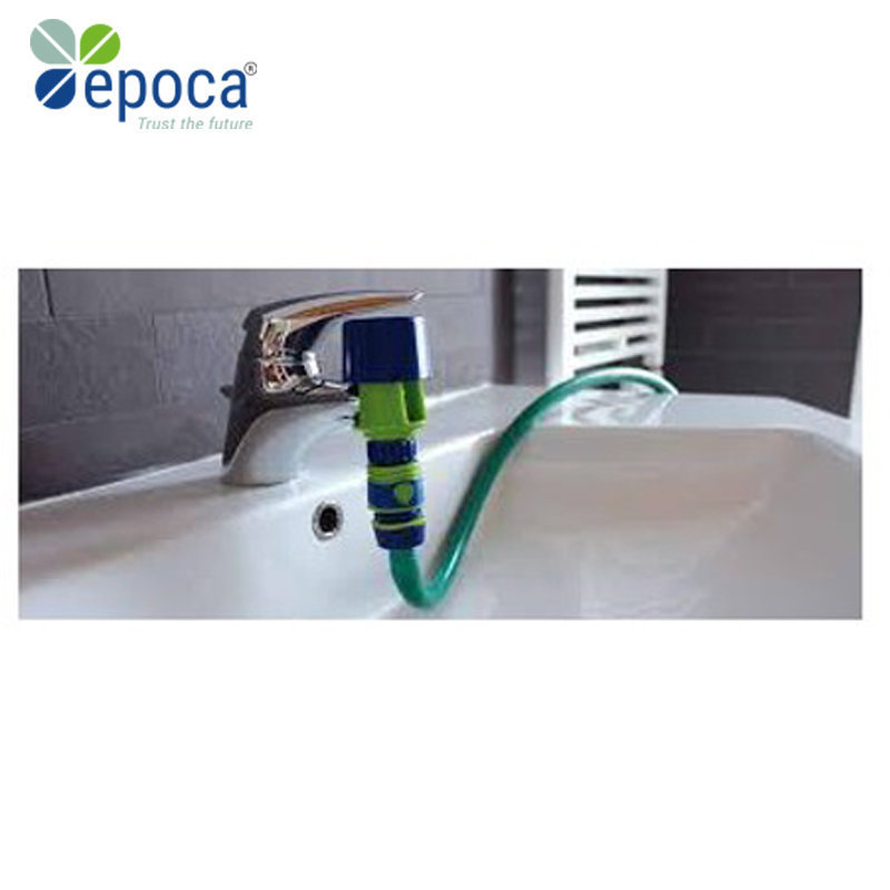 Raccord pour robinets d'eau et mélangeurs de cuisines, SDB, toilettes, etc.. Idéal pour disposer d'eau dans des endroits sans points d'eau (terrasses, balcons d'appartements, etc.). Peut se raccorder soit par un raccord rapide ou un filetage femelle 3/4" Changement d'accessoire d'arrosage facile et rapide .
