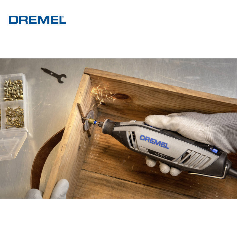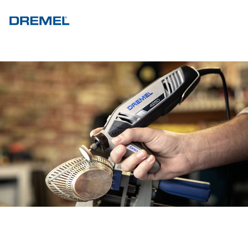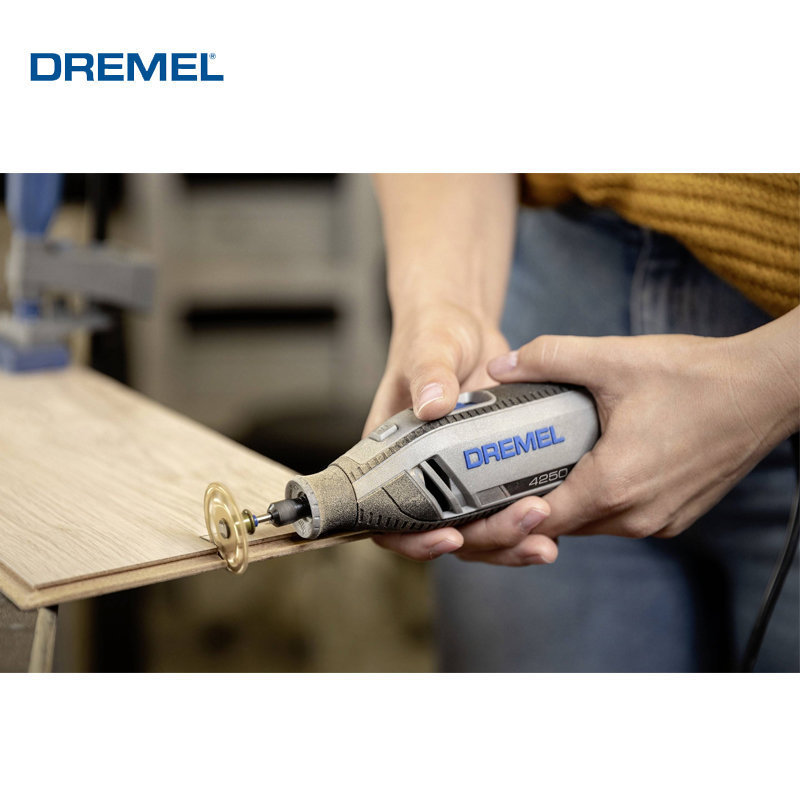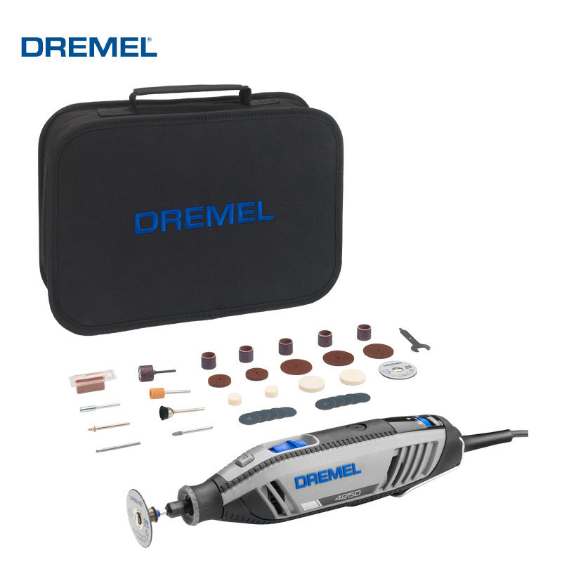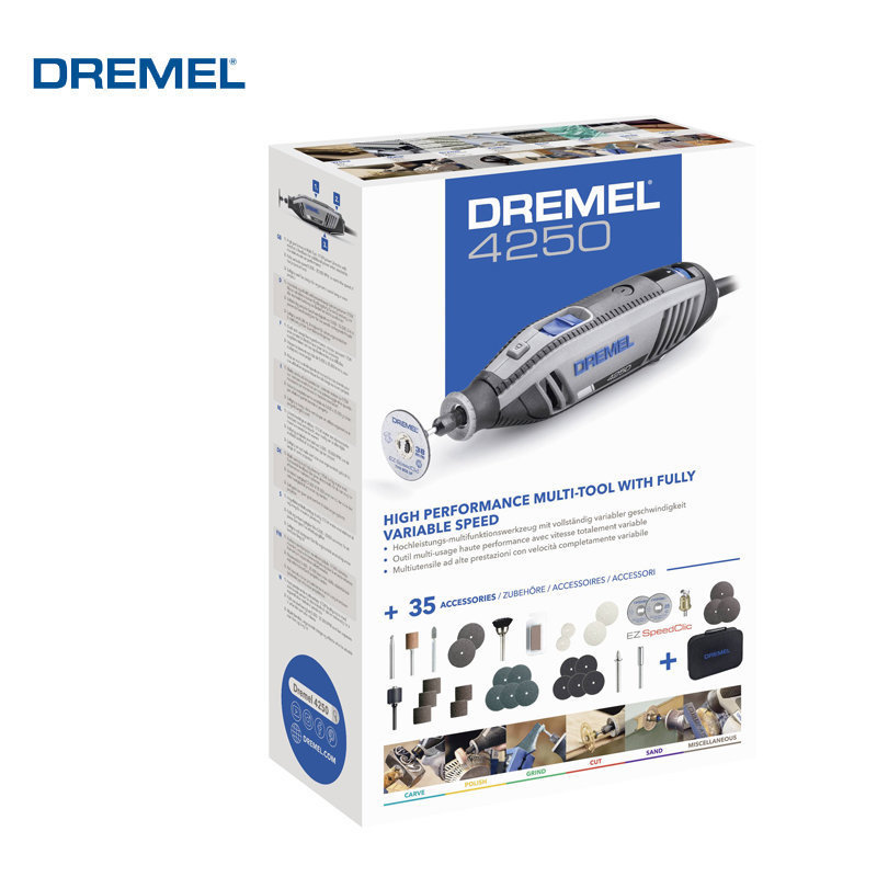 Le Dremel 4250 allie puissance maximale et design durable. Ce set contient l'outil multifonction Dremel 4250, 35 accessoires et un sac en tissu. Il est donc parfait pour vos projets de bricolage exigeants.. . Ce texte a été traduit par une machine. -outil multifonction haute performance filaire avec puissance ininterrompue.. Commencez immédiatement par couper, lubrifier, polir, poncer et graver.. -35 accessoires comprenant EZ SpeedClic.. - facile à transporter et à ranger grâce au sac en tissu fourni.