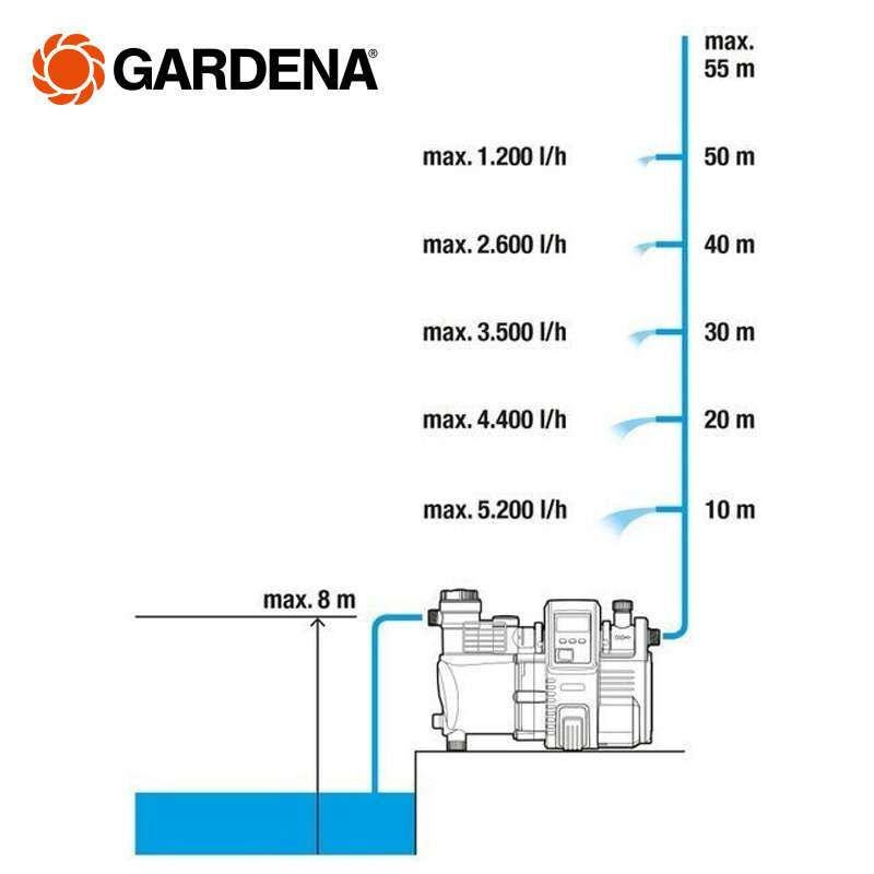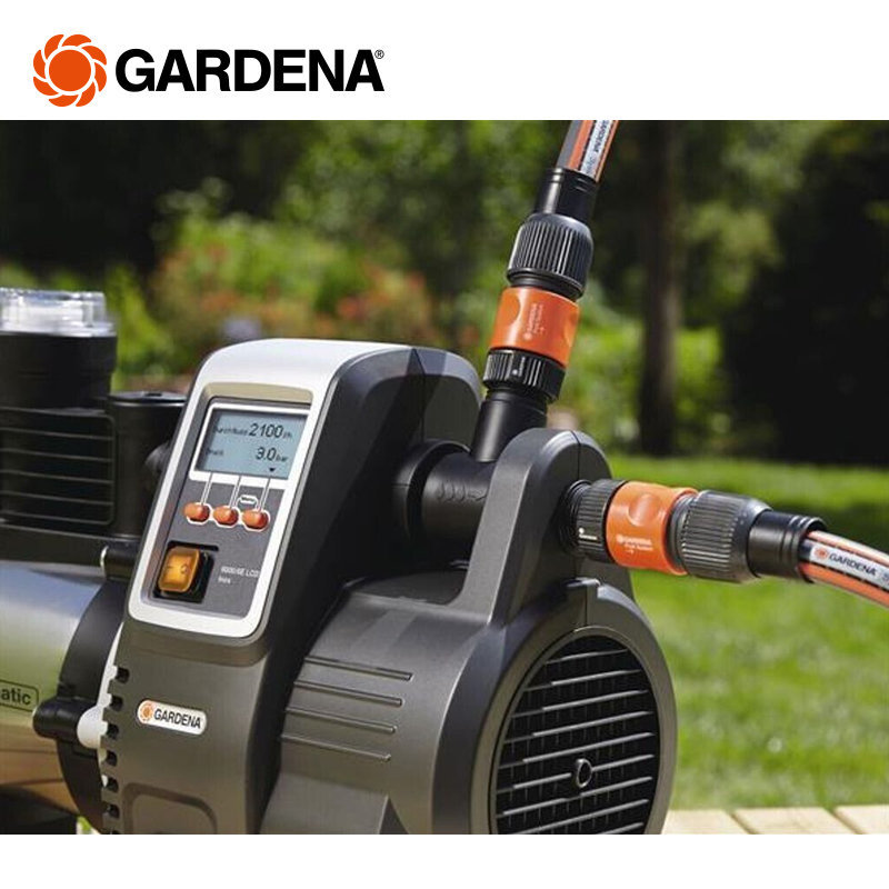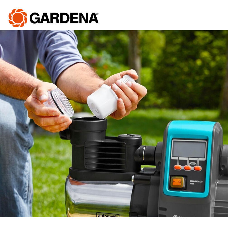 La pompe automatique maison et jardin 6000/6E LCD Premim gardena est idéale pour arroser le jardin ou alimenter en eau la maison (ex. chasse d’eau ou encore lave-linge). Très facile à mettre en marche, cette pompe s’active automatiquement lorsqu’un besoin en eau est détecté et s’arrête automatiquement quand il n’y a plus de besoin en eau. Elle est équipée d’une turbine à 5 étages qui permet de pomper l’eau rapidement et de manière silencieuse. La pompe automatique maison et jardin 6000/6E LCD Premim GARDENA est équipée d'un écran LCD (24 langues) indiquant les incidents de fonctionnement et les actions correctives à apporter. Plus besoin de mode d'emploi ! Avec en plus l'affichage des données en cours (pression, débit, avertissement gel,..). La pompe est dotée d'une large ouverture pour remplir facilement la pompe et faciliter son amorçage (avec filtre transparent et 2 sorties d'eau dont 1 pivotante). Elle possède également un clapet anti-retour automatique intégré pour faciliter la mise en marche de la pompe : 1) Je remplis la pompe en eau. 2) Je branche. 3) Je place l'interrupteur sur START, la bascule se fera automatiquement sur AUTO.