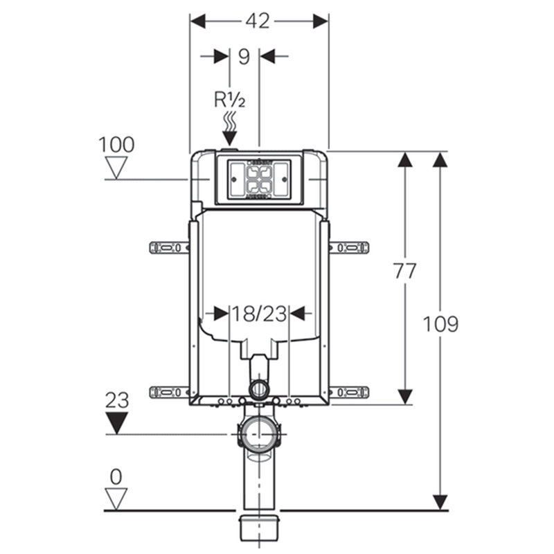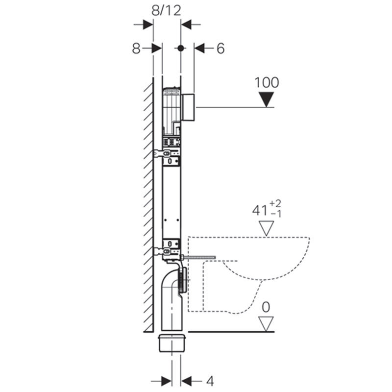 Bâti-support Geberit Combifix pour WC suspendu, 109 cm, avec réservoir à encastrer Alpha 8 cm avec plaque de commande rond ou carré chromé.