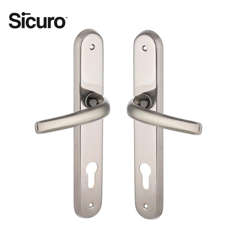 Poignée de porte grand trou satin nickel sicuro.- Couleur de la poignée : Nickel Satiné - Modèle : (FH 1561) Belle- Marque : SICURO
