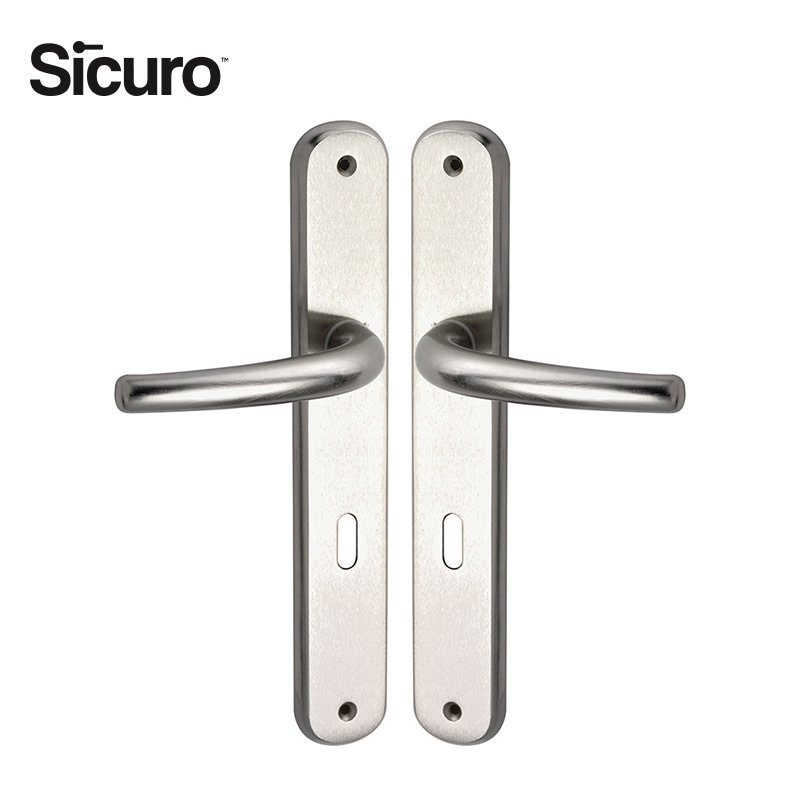 Poignée de porte petit trou satin nickel sicuro.- Couleur de la poignée : Nickel Satiné - Modèle : (FH 1561) Belle- Marque : SICURO