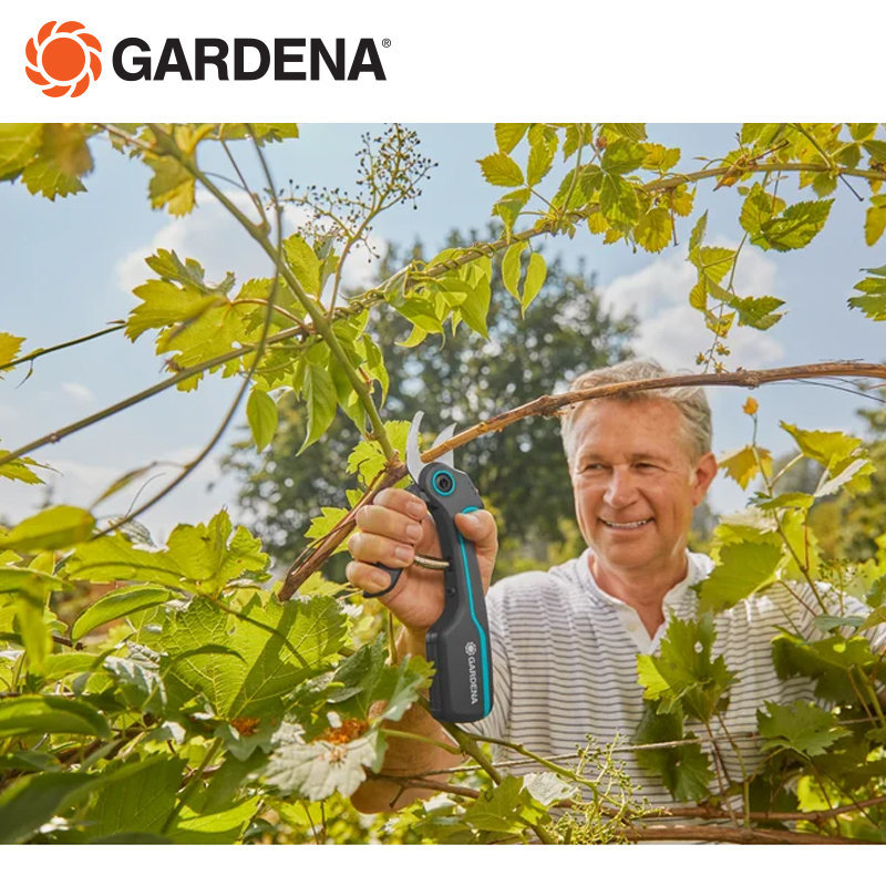 Le sécateur sur batterie AssistCut de gardena est le compagnon idéal pour couper facilement et sans effort les branches, les jeunes pousses et les fleurs avec un diamètre de coupe maximal de 25 mm.