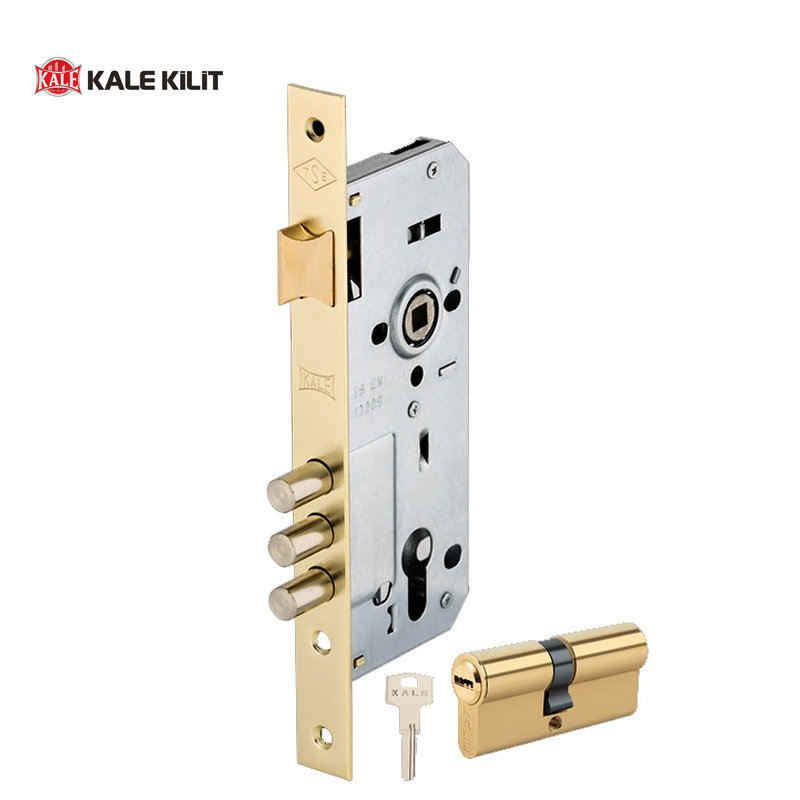 -Serrure encastrée grand-trou avec 3 pistons - Code 2000 - REF : 21468107-Couleur : JAUNE -Corps Acier galvanisé Plaque et contre-plaque : Acier