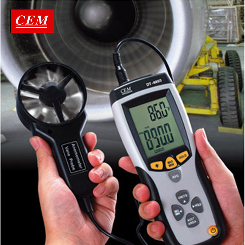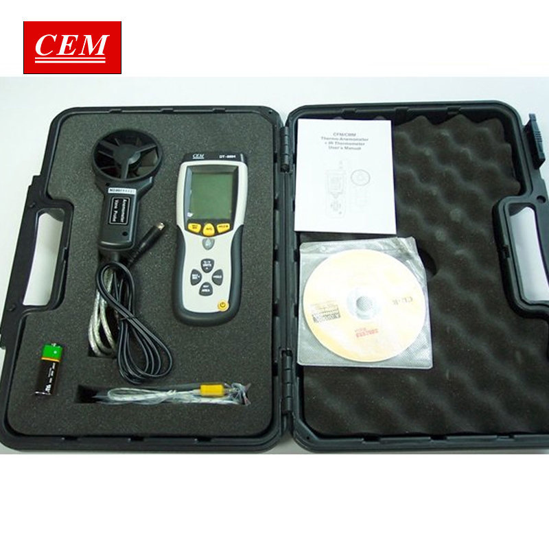 Thermo-anémomètre avec thermomètre infrarouge intégré et sonde externe pour la mesure de la vitesse du vent (câble de 1,2 m), il mesure également le débit d'air en CMM et CFM. Le thermomètre infrarouge intégré mesure la température de surface jusqu'à 500 °C.