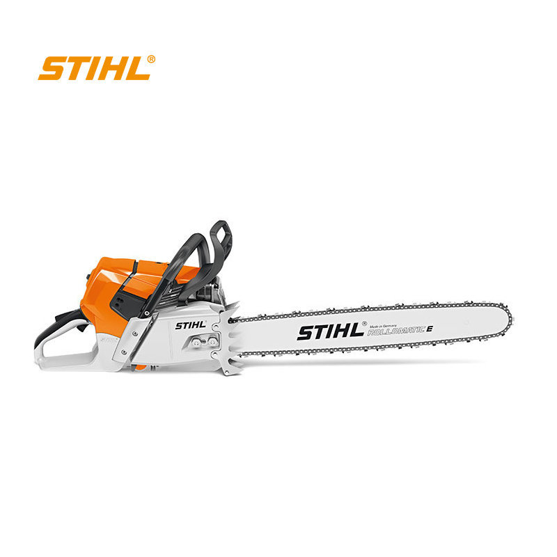 Scie haute performance pour les applications exigeantes dans les peuplements à haute densité. Système anti-vibration STIHL, filtre HD2 avec un excellent effet de filtrage, pompe à huile haute performance à débit contrôlé pour le transport de grandes quantités d'huile ; attrape-chaîne à rouleaux de série.