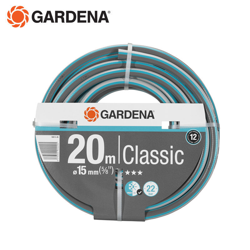 Tuyau d’arrosage de diamètre 15 mm (5/8’’) fabriqué sans matières toxiques (exempt de phtalates et de métaux lourds). Longueur : 20 m. Pression de rupture : 22 bar. Résistant aux UV. garantie commerciale 12 ans.