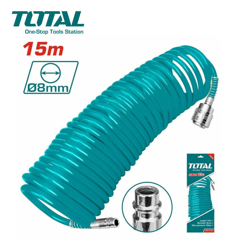 Le tuyau d'air comprimé Total Tools THT11151 en PU de 15 mètres est conçu pour une utilisation durable avec les compresseurs et outils pneumatiques. Léger, souple et compatible avec les connecteurs Type Europe, il garantit efficacité et confort d'utilisation à prix compétitif en Tunisie.